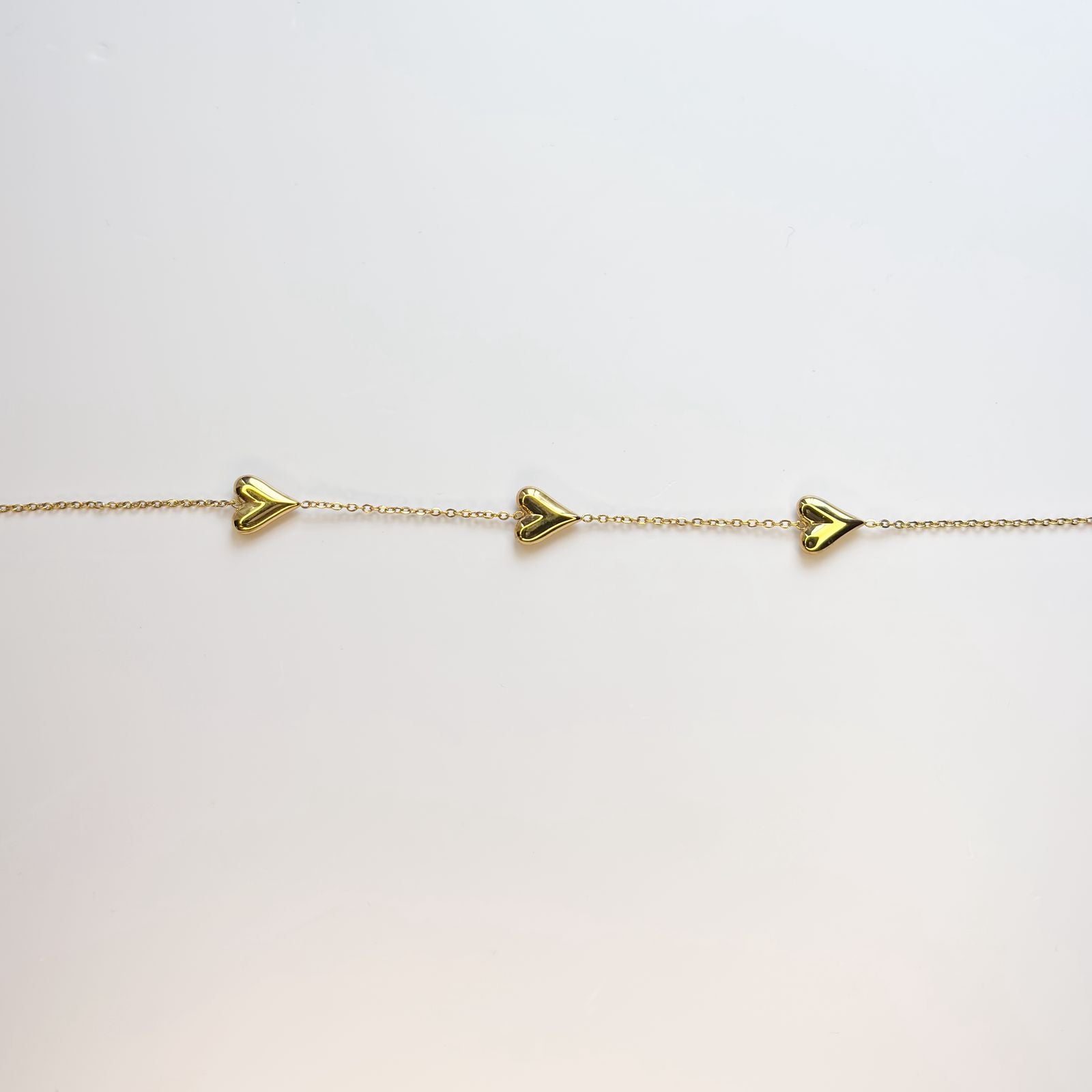 Crafted in anti-tarnish stainless steel with premium PVD gold plating, this anklet is waterproof, sweat-proof, and made to last. Featuring multiple solid heart charms along a sleek gold chain, it adds a playful and romantic touch to every step.