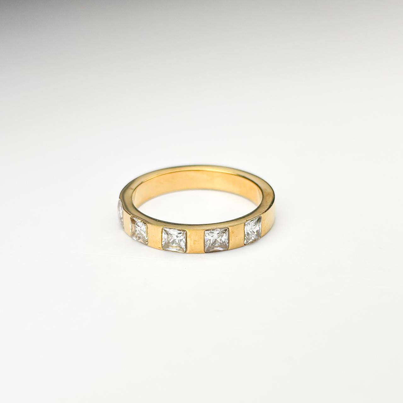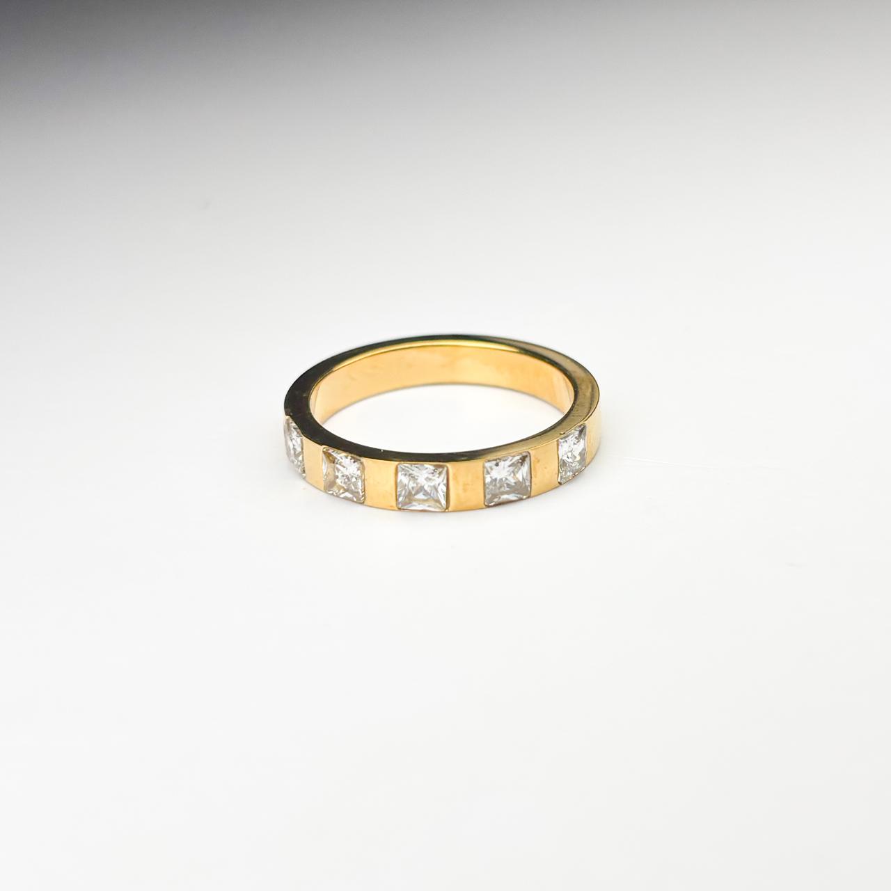 Perfect for sparkle lovers, elegant ring stacks, minimal gold aesthetics, or anyone who loves a clean row of princess-cut shine that looks timeless and luxe.